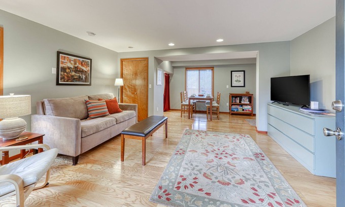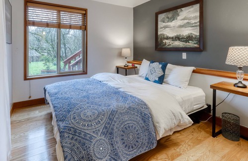 Serendipity House is a quiet and peaceful guest suite that has its own entrance and is the ideal spot for your next visit to Eugene! This bright, updated suite features a back yard patio and a hot tub nestled into the trees, plus a garden that provides visitors with a private and tranquil atmosphere. Inside, you’ll find a comfortable living room with a TV and a private washer/dryer. After a long day of exploring the area, let the kids romp around the wide, open expanse of the yard while you simmer away in the privacy of the enclosed hot tub. When it's time to get dinner on the table, the home's efficient little kitchenette will make short work of tonight's meal with a countertop induction oven, a single-burner induction stove-top, and even a slow cooker for those cold-weather stews! Oh, and the kids will have all the mixing bowls and gadgets they need to make their favorite holiday cakes and cookies! Play a few games of Ping-Pong, or cook up some burgers on the gas grill. The unique character and cozy ambiance of this suite are ideal for up to four guests, so bring a few friends and enjoy Eugene like a local.