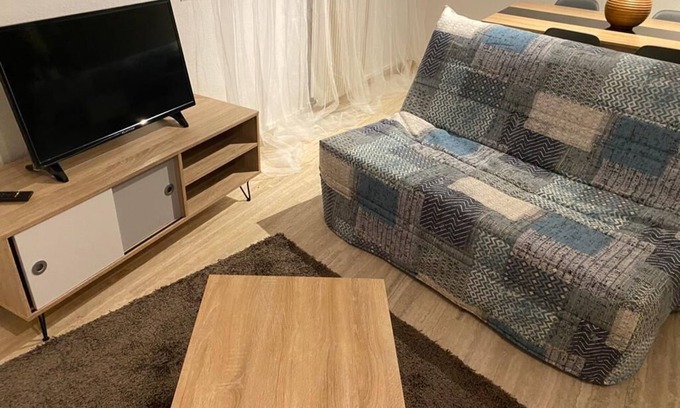 Prepare a home-cooked meal in the kitchen, complete with an oven, a stovetop, and a refrigerator, as well as a coffee maker, a microwave, and cookware. And you can even travel light because you'll have a washing machine. Other amenities at this 1-bedroom, 1-bathroom rental include a sofa bed, heating, and a dining table.