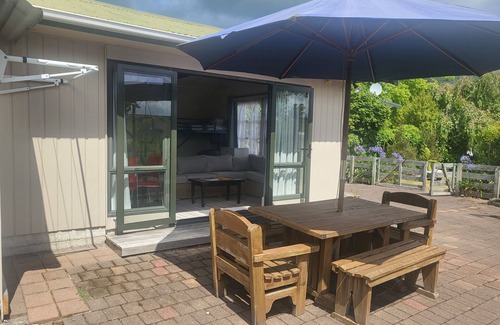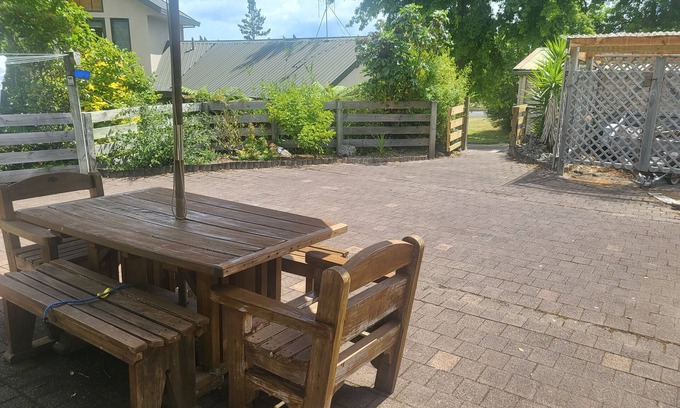 The bach is at the back of our property but has its own entrance fenced off area and parking. There is a private fence between the two properties.