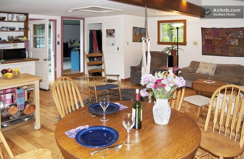 In the evening, cook in a well-equipped, newly remodeled island-type kitchen with a quiet dishwasher, which is part of a 'Great Room' (so you can socialize while you cook) using food from local farm stands and eat a relaxed dinner at home.