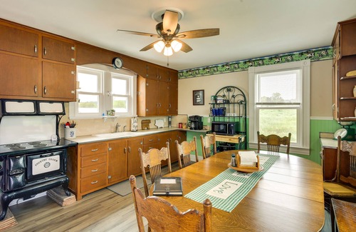Surrounded by greenery on all sides, this private Washington house is the perfect escape for friends or families seeking a serene getaway to the Missouri wilderness. Take advantage of the rural-yet-convenient setting by visiting the Iron Spike Model Train Museum or spending the day at James W. Rennick Riverfront Park. Nestled on 5 acres, this 3-bedroom, 2.5-bathroom vacation rental offers a gas grill, an outdoor dining area, a foosball table, a Smart TV with a DVD player, and ample parking.
