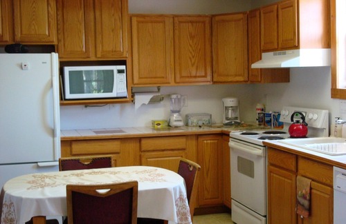 Each of the 3 bedrooms has a queen size bed. 2 full bathrooms. Master bedroom has a balcony with a view of the forest and wildlife ponds. Two double and one single futon in addition to one large couch and two love seats. Fully furnished kitchen. 52' TV with laserdisck (300+ titles), DVD player and stereo. Wifi. Two large decks. Fenced yard. Hot tub with stereo. Two futons in entry room for additional guests. Ample off street parking. 100 forested acres with maintained trails. Total payment due 14 days prior to arrival; however, late bookings can be made up to seven days prior to arrival.