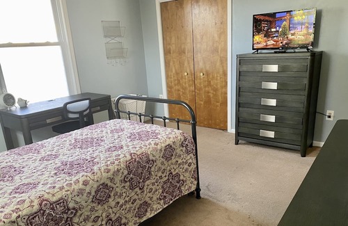 Peaceful and centrally located place. B+ area. Includes water, electric, wi-fi, room has key, heating, a/c, air purifier, 32” TV, assigned parking, washer/dryer, security cameras. Walking distance to bus stop, mall, bank, pharmacy, gym, hospital, grocery store, gas station, fast foods, restaurants, trail park, museums.