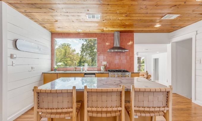 The River House on the San Marcos river is calling your name. Perfect for weekend getaways for couples, friends and families. Steps away from the pristine, sparkling waters of the San Marcos River and full of amenities that make you feel right at home. This 1930's home was stylishly remodeled for a unique experience for our valued guests. Plush bedding, fluffy white towels and pillowtop beds help you relax and enjoy your time while you soak up the views and peaceful nature that surrounds you.