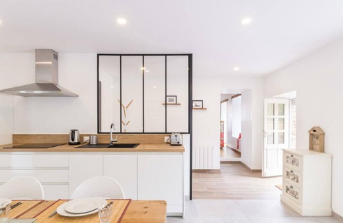 Detached house. On the ground floor: Living room with kitchenette (induction hob, Nespresso machine, microwave, oven, dishwasher, freezer compartment). Laundry room with WC (washing machine). Lounge (TV with foreign channels, ADSL Internet, board games and books). Upstairs: Bedroom 1 (160X200 bed). Shower room with WC (2 sinks, shower, heated towel rail, hairdryer). Bedroom 2 (3 90X190 beds). Outside: Enclosed asphalt courtyard secured by a barrier. Parking. Garden furniture. Barbecue. Storeroom with ping-pong table and darts. Unfenced grassy area behind the house. Electric heating at an additional cost. Sheets and towels for hire (beds made on arrival). Optional cleaning service. Baby equipment (cot with mattress, high chair and bath). Nestled in its narrow, green valley, this picturesque little hamlet on the Hague Peninsula is protected from the sea spray. Below, the immense sandy beach of Siouville suddenly broadens the horizon and always provides a healthy boost of energy! Well-known to windsurfers and surfers, the waves here are perfect. With its large, enclosed courtyard, your stone house has been remarkably renovated by Laurent and Christel. White predominates inside, giving this accommodation a very peaceful atmosphere. A few stone steps lead you to a grassy plot higher than the house, offering views of the sea and the cliffs of Jobourg. Also note that the cottage has a storage room for surfboards and wetsuits, if needed.