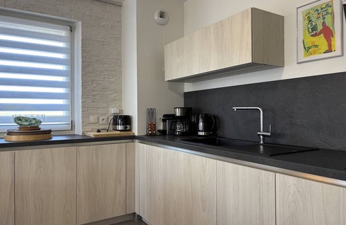 - A beautiful living room with a fitted and equipped kitchen opening onto the living room.