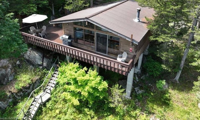 Take a break and unwind at this peaceful oasis. Located on the quiet part of Sand Lake on the Rideau system, come enjoy a little piece of paradise. Property has two bedrooms in the main cabin and a Bunkie for an additional fee. Beautiful views, with great fishing, swimming and hiking. Jump in a kayak and explore the island with jumping rocks in front of the cottage. No wifi. Talk to each other at the fire pit with a view! Multiple areas to sit and enjoy the quiet and all of the wild life.
