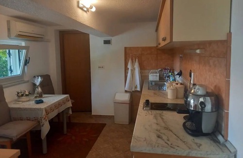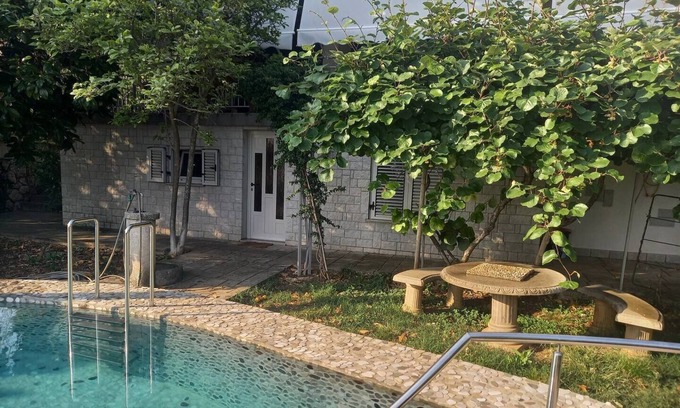 Peaceful & secluded apartment for 1-2 guests, with a pool, backyard and outdoor terrace with a grill. Ideal for rest and relaxation away from urban commotion, directly overlooking Kostrena's seaside promenade with its many beaches within throwing distance of the apartment.