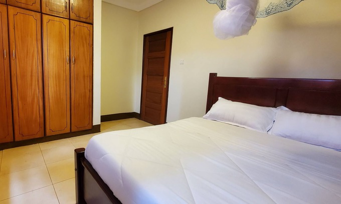Beautiful spacious house in Entebbe that is only 5 mins from the Airport with a good neighbourhood, security and free WIFI. 3 mins walk to the beaches, 7 mins to the ZOO and Shopping mall and breakfast arranged.