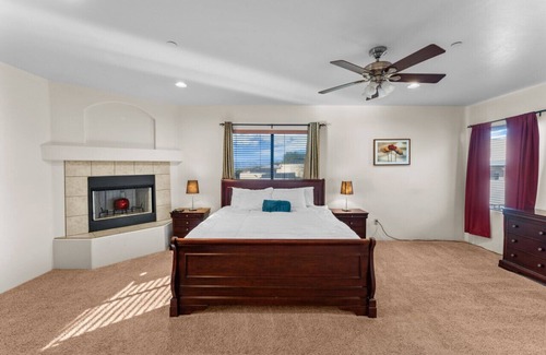 Bring the whole family to this extravagant home with lots of room for fun! The vaulted ceilings and open feel allow tons of light into the space. With this Tuscan style 2-story you have room to sleep 9 people plus with an office flex space! Play a game of Basketball in the front yard driveway, prepare a large meal in the oversized kitchen and dining room, or watch the stars on the rooftop deck with panoramic MOUNTAIN VIEWS. There are so many spaces to see!
