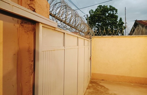 The two bedrooms apartment is ryt next to a hospital, wall fence with razor wire, security cctv outside, dstv, wifi, netflix, spacious rooms, one among two very private houses, free parking as well...