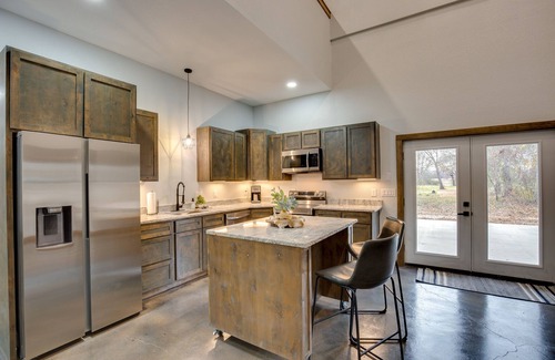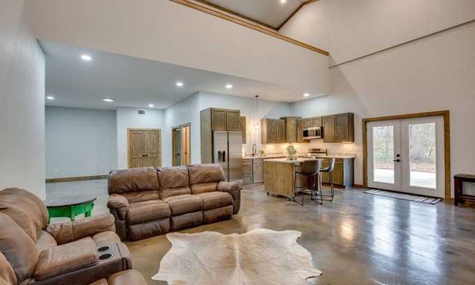Retreat to the great outdoors and enjoy access to Lake Fork just a mile away when you stay at this Yantis, TX, vacation rental. This open and spacious, 3-bed, 2-bath home features high ceilings, modern appliances, and a tree-lined outdoor space with plenty of boat parking. Get out on the water for swimming and crappie fishing, hunt for antique gems at First Monday Trade Days in Canton, or ride the track at Johnsonville Motocross Farm. After your adventures, cozy up for a movie on the Smart TV.