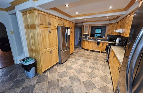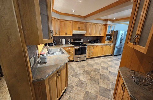 8 bedroom 3 bathroom house surrounded by farm land, full kitchen with 2 fridges and 2 BBQ's one is propane and the other is charcoal.