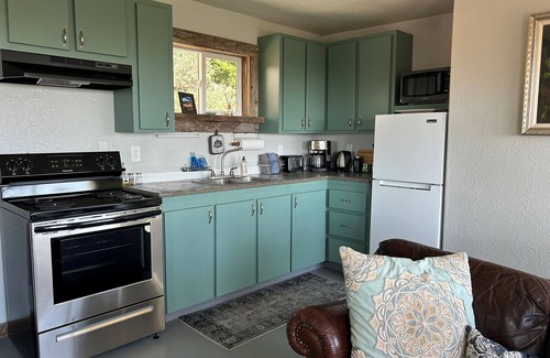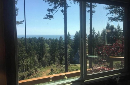A hilltop setting among the pines, great for a romantic get-a-way or a serine, getaway for the individual. The property is extremely private with expansive ocean views from every window and a relaxing patio for sunsets. Above the fog line (usually). 3 miles to the beach and 4 to town. Many guests find themselves, just hanging out, a very relaxing and soothing property. Many birds including Pileated woodpecker and Quail. Incredible night skies! Very, very clean (my wife) and comfortable. See photos. Every year we plant new flowers, lots of new improvements, new heating system, new hot water heater, new bed and bedding and new paint. As hosts, we respect your privacy and will strive to make you as comfortable as possible.