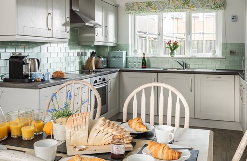 Plan the perfect day in Camber: start with espresso in the sunny, eat-in kitchen, then explore the gorgeous sandy beach or the cobbled streets of Rye, followed by dinner in the sea breeze—an al fresco table in the garden seats 5. Top it all off with a crackling fire in the wood-burner in the cosy living area and your favourite film on the flat screen.