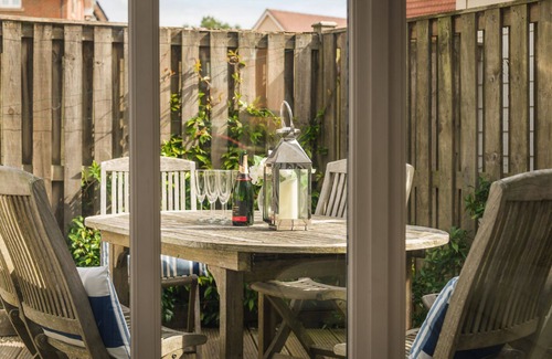 Outside is a sunny fully enclosed landscaped garden with rattan furniture for the all important al fresco dining in the seaside air.