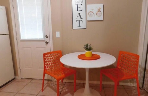 Welcome to Pedal Inn 5, our economy unit in the Market District. Right across the street from 8th Street Market and the Momentary. 2 story with the living, kitchen, dining area and half bath on main floor. 2 bedrooms, one with a king and the other with 2 twins upstairs with a full bath. Pets welcome with a $20 per pet per night fee. Pets must stay off furniture and be crated while you are gone.
