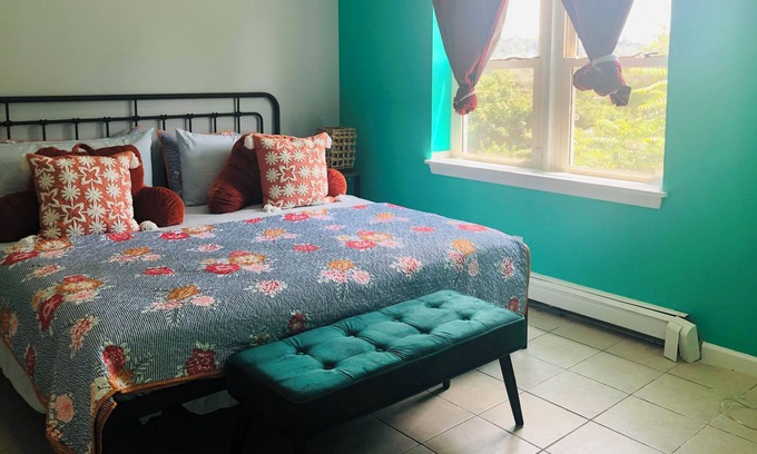 We are in the heart of downtown Peekskill. You can walk everywhere, so no car is needed! You have free street parking, tons of unique and cool amenities, and epic views of the mountains and city skyline. The house is bright, colorfully decorated, filled with sunlight, and chic artistic minimalistic style. Between your room, our tips, and Peekskill's constant events, you will have everything you need to enjoy your Peekskill, Hudson Valley, River Towns, and NY's Wine Country!