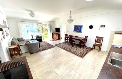 Food & DrinkTea/Coffee makerBathroomShared bathroom, Toilet, Bathtub or shower, Towels, Walk-in shower, Shower, Additional bathroom, Toilet paper, Private bathroomMedia & TechnologyTV, Satellite channels, Flat-screen TVGeneralHardwood or parquet floors, Fan, Trash cans, Air conditioning, Carpeted, Iron, Private entrance, Heating, Tile/Marble floor, Ironing facilitiesKitchenDishwasher, Kitchenware, Oven, Stovetop, Toaster, Dining table, Cleaning products, Kitchenette, Washing machine, Refrigerator, Electric kettle, KitchenOutdoorsTerrace, Barbecue, Outdoor furniture, Outdoor dining area, Patio, BalconyLiving AreaSofa, Dining area, Desk, Sitting areaBedroomWardrobe or closet, Linens, Childrens' cribs, Walk-in closetViewGarden view, ViewAccessibilityEntire unit located on ground floor, Entire unit wheelchair accessible, Toilet with grab rails, Roll-in showerBuilding CharacteristicsDetachedRoom AmenitiesClothes rack, Socket near the bed, Drying rack for clothing, Sofa bed |