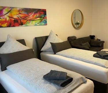 Pension Piqué enjoys a location in Mechernich, 21 miles from Phantasialand and 30 miles from Nuerburgring. This property offers access to a terrace, free private parking, and free Wifi. At the guest house, each unit comes with a desk, a flat-screen TV, a private bathroom, bed linen, and towels. A microwave and fridge are also featured, as well as a coffee machine and a kettle. The rooms are equipped with heating facilities. Cologne Bonn Airport is 40 miles away.