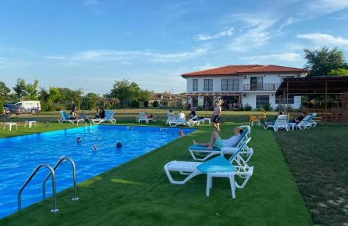 Offering garden views, Pensiunea Paradiso in Sarinasuf provides accommodations, pool with a view, a garden, and barbecue facilities. There's a private entrance at the guest house for the convenience of those who stay. The guest house offers rooms with air conditioning, free private parking, and free Wifi. The units come with parquet floors and feature a fully equipped kitchen with a dishwasher, a dining area, a flat-screen TV, and a private bathroom with shower and a hair dryer. An oven, a microwave, and toaster are also featured, as well as a coffee machine and a kettle. At the guest house, the units have bed linen and towels. Buffet and continental breakfast options with local specialities, fresh pastries, and fruit are available. A mini-market is available at the guest house. For guests with children, the guest house features outdoor play equipment. Kids pool is also available at Pensiunea Paradiso, while guests can also relax on the sun terrace. Mihail Kogălniceanu International Airport is 75 miles away, and the property offers a paid airport shuttle service.