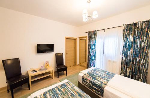 Pensiunea Puiu in Afumaţi provides accommodations with a garden, a bar, and barbecue facilities. This guest house provides air-conditioned accommodations with a balcony. The guest house also features free Wifi, free private parking, and facilities for disabled guests. The units come with parquet floors and feature a fully equipped kitchen with an oven, a dining area, a flat-screen TV with streaming services, and a private bathroom with shower. At the guest house, all units are soundproof. At the guest house, every unit is fitted with bed linen and towels. A continental breakfast is available at the property and includes juice and cheese. Guests are welcome to eat at the on-site restaurant, while packed lunches are also available upon request. For guests with children, the guest house offers outdoor play equipment. An indoor play area is also available at Pensiunea Puiu, while guests can also relax on the sun terrace. Iancului Metro Station is 9.2 miles from the accommodation, while Bucharest National Theater TNB is 10 miles away. Băneasa Airport is 8.7 miles from the property, and the property offers a paid airport shuttle service.