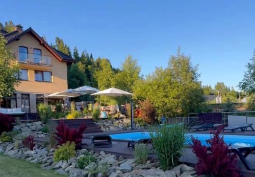 Providing a garden, Pensjonat pod Samowarem features accommodations in Tylicz. Among the facilities at the property, there's also an infinity pool and outdoor fireplace. The guest house also provides free Wifi, free private parking, and facilities for disabled guests. At the guest house, all units are fitted with a wardrobe, a flat-screen TV, a private bathroom, bed linen, and towels. A terrace with outdoor furniture and mountain views is offered in some units. At the guest house, all units are allergy-free. A selection of options including warm dishes, local specialities, and fresh pastries are served for the buffet breakfast. There is a coffee shop and lounge. For guests with children, the guest house offers an indoor play area and outdoor play equipment. Skiing and cycling can be enjoyed nearby, while a bicycle rental service and ski storage space are also available on-site. Nikifor Museum is 3.3 miles from Pensjonat pod Samowarem, while Krynica Zdroj Train Station is 4 miles away.