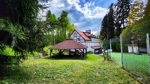 Pensjonat Sokolec enjoys a location in Sokolec, 20 miles from Książ Castle and 26 miles from Polanica Zdroj Train Station. Offering a garden, the property is located within 18 miles of Świdnica Cathedral. There's a sun terrace and guests can access free Wifi and free private parking. At the guest house, the units are equipped with a private bathroom. Guests at the guest house can enjoy a buffet breakfast. You can play table tennis and darts at Pensjonat Sokolec, and the area is popular for hiking and walking tours. The guest house also has outdoor fireplace and a picnic area for a day outdoors. Sztolnie Walimskie "RIESE" is 3.8 miles from the accommodation, while Polanica Zdrój Mineral Water Pump Room is 24 miles away. Copernicus Wrocław Airport is 48 miles from the property.
