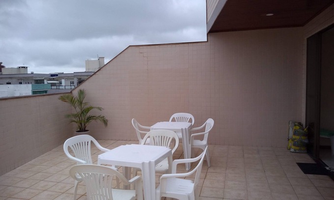 The penthouse is located approximately 300 m. from the beach and has appropriate environments to accommodate 10 people, 2 suites with double beds and 1 suite with 4 single beds, and 2 spare mattresses. All mattresses consist of pillows, without offering bed and bath linen. The 4 bathrooms and 1 half bathroom are spacious with cabinets and workbench in perfect condition. The large hall is structured for 2 environments, being dining room and TV room. The kitchen is organized with household items (plates, pans, cutlery, tablecloths, etc.) and other household appliances. At the top of the penthouse there is a barbecue with its implements and a support bench with tables and chairs. In the garage there are 3 parking spaces. The condominium has for guests a sauna and games room. The neighborhood is quiet in proximity to restaurants and shopping and is set in beautifully landscaped grounds suitable for rest and leisure.