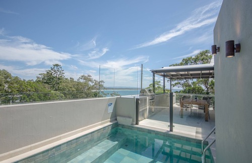 Spectacular true penthouse encompassing the top floor of Little Cove Court. Private, luxurious and secluded, located directly across from Noosa's beautiful Little Cove Beach. Refined, contemporary furnishings and fittings throughout. Fully equipped modern kitchen complete with a dining table to seat six. Relax on the lounge suite and enjoy the view, or sit back and watch a dvd or television. On the private outdoor terrace the breathtaking view stretches all the way up Noosa's North Shore. Relax outside with a private plunge pool, outdoor shower, BBQ, additional outdoor dining table and sun lounges for relaxing. The master bedroom, with a king size bed and smart tv, has a beautiful travertine ensuite complete with freestanding soaking bath, dual sinks and separate shower with both overhead and hand shower. The second bedroom has a double bed, smart tv and is conveniently located next to the additional bathroom which contains a lavish double-sized shower, with both overhead and additional wall-mounted massage jets. Linen and towels are provided, as well as Saya skincare products to use during your stay. Single car parking space provided as well. Please note, Little Cove Court has stair access only, to all units, there is no lift in the building.