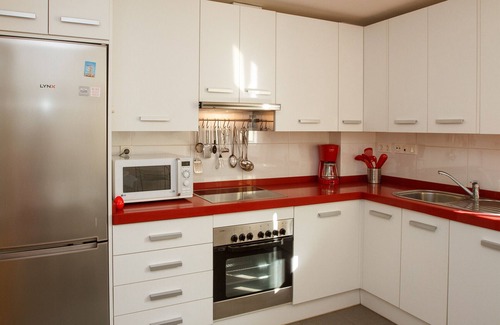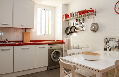 One enters an inviting living room, which is nicely furnished with dining table, sofa bed, TV, DVD, Internet access. The kitchen is fully equipped with oven, microwave, dishwasher and a paella cooker, if you want to try out Spain's unofficial national dish.