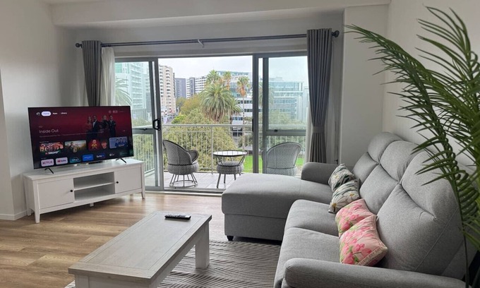 Elevate Your Auckland Experience to New Heights! A breathtaking 6th-floor penthouse with panoramic views of Auckland's city centre and parks. Perfect for families or groups. Panoramic Balcony, 3 bedrooms (Master, double and single) plus additional chaise in lounge for up to 6 guests. Two Luxurious Bathrooms, Gourmet Kitchen; high-speed Wi-Fi and a large smart TV; Heated Swimming Pool, Gym, Sauna, Tennis Court and two free Car Parks.