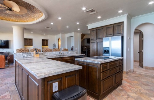Beautiful Oceanfront Penthouse Condo in Bella Sirena Luxury Resort. 3 Large Master Suites, 2 twin bunk beds bedroom with breathtaking views of the Sea of Cortez. We have the best beach and downtown views from Building E in Bella Sirena - the Corner Penthouse! The property offers a private Jacuzzi on the massive private balcony as well as outdoor furniture and a barbecue grill. There is a family game room equipped with a pool table on the first floor. The condo is fully furnished to enjoy time away with friends and family and experience warm waters of the Sea of Cortez.