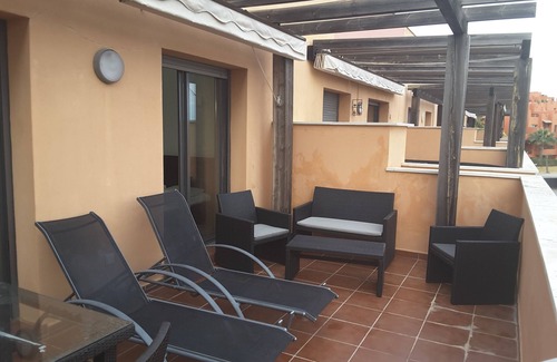 The furnished terrace offers breathtaking views of the coast and the rock of Gibraltar.