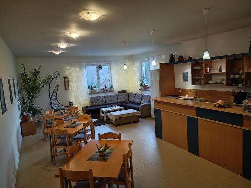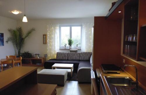 Penzion Kelčany u Kyjova in Kelčany provides accommodations with a garden and a shared lounge. This guest house features free private parking, a shared kitchen, and free Wifi. The property offers services including meeting and banquet facilities and walking tours. All units come with a terrace with garden views, a fully equipped kitchen with a dishwasher and a microwave, and a private bathroom. A fridge, a stovetop, and kitchenware are also available, as well as a coffee machine. At the guest house, each unit has bed linen and towels. There is an on-site snack bar, and during warmer months you can make use of the barbecue facilities. For guests with children, the guest house provides outdoor play equipment. Skiing, cycling, and hiking are possible within the area, and Penzion Kelčany u Kyjova offers ski storage space. Dinopark Vyskov is 27 miles from the accommodation. Brno-Turany Airport is 30 miles from the property.