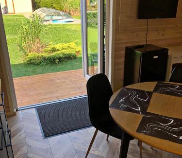 BathroomShower, Toilet, Towels, Bathtub or shower, Private bathroom, Toilet paper, Free toiletriesKitchenKitchen, Dining table, Stovetop, Kitchenware, Wine glasses, Electric kettle, RefrigeratorGeneralKey access, Trash cans, HeatingMedia & TechnologyFlat-screen TVLiving AreaDining areaBedroomLinens, Wardrobe or closetViewPool view, Garden viewOutdoorsOutdoor furniture, TerraceAccessibilityEntire unit located on ground floorRoom AmenitiesSocket near the bed |