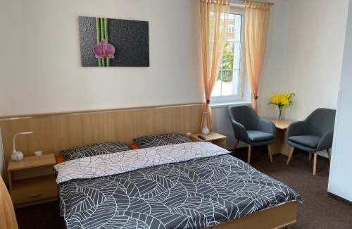 Featuring garden views, Penzion pod Kostelem in Bublava offers accommodations, a garden, barbecue facilities, and a shared lounge. This guest house provides free private parking and a shared kitchen. The guest house features mountain views, a sun terrace, and free Wifi is available throughout the property. All units are equipped with a flat-screen TV and a fully equipped kitchen with a microwave. There's a private bathroom with shower in some units, along with slippers, a hair dryer, and free toiletries. At the guest house, every unit is equipped with bed linen and towels. Guests at the guest house will be able to enjoy activities in and around Bublava, like hiking. Skiing and cycling can be enjoyed nearby, while ski-to-door access and ski storage space are also available on-site. German Space Travel Exhibition is 8.5 miles from Penzion pod Kostelem, while Göltzsch Viaduct is 26 miles away. Karlovy Vary International Airport is 30 miles from the property, and the property offers a paid airport shuttle service.