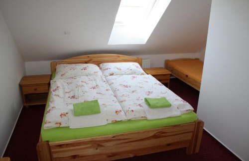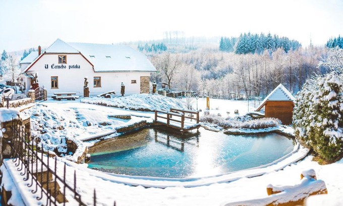Penzion U Černého Potoka in Nová Lhota provides accommodations with a garden, a tennis court, and a terrace. Featuring a seasonal outdoor swimming pool, the 3-star guest house has air-conditioned rooms with free Wifi, each with a private bathroom. The property features a children's playground and parking on-site. Each unit includes a wardrobe and a flat-screen TV, and some units at the guest house have a balcony. At the guest house, units include bed linen and towels. Guests are welcome to eat at the on-site traditional restaurant, while packed lunches are also available upon request. The area is popular for hiking, and free use of bicycles is available at the guest house. Skiing and cycling can be enjoyed nearby, while a ski pass sales point and ski storage space are also available on-site. Cachtice Castle is 27 miles from Penzion U Černého Potoka, while Penati Golf Resort is 27 miles from the property.