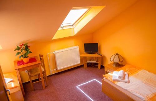 A good location for a stress-free holiday in Veselí nad Moravou, Penzion Vinárna U Hroznu is a guest house surrounded by views of the quiet street. The property features a garden, bar, and private parking among other facilities. Among the facilities of this property are a restaurant, a 24-hour front desk, and luggage storage space, along with free Wifi throughout the property. The guest house has private entrance. At the guest house, units come with a desk, a flat-screen TV, a private bathroom, bed linen, and towels. At the guest house, all units are soundproof. The rooms are equipped with heating facilities. There is an on-site snack bar. For guests with children, the guest house offers outdoor play equipment. After a day of cycling, fishing, or hiking, guests can relax in the shared lounge area.