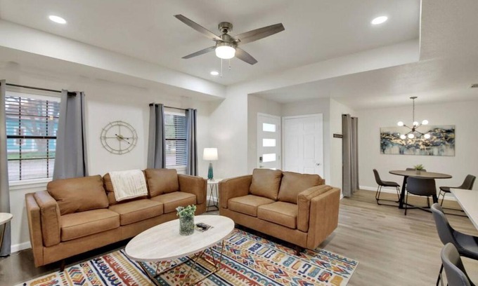 Providing a garden, Peppercorn Blue - Locally Run! features accommodations in Taylor. The vacation home also provides free Wifi and free private parking. Leading onto a terrace, the air-conditioned vacation home consists of 1 bedroom and a fully equipped kitchen. A flat-screen TV is featured. The accommodation is non-smoking. Dell Diamond is 14 miles from the vacation home, while Round Rock Express is 14 miles away. Austin-Bergstrom International Airport is 38 miles from the property.