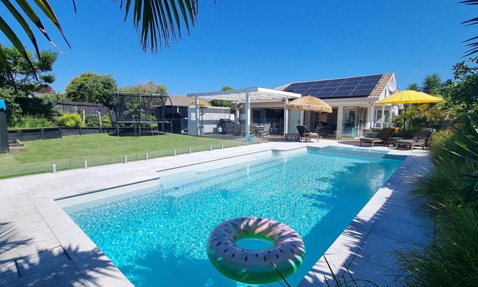 Our beach house is an easy-living, family-friendly home designed for summer fun with great outdoor areas, mineral salt-water swimming pool, spa pool, and north-facing backyard which is well set up for families.