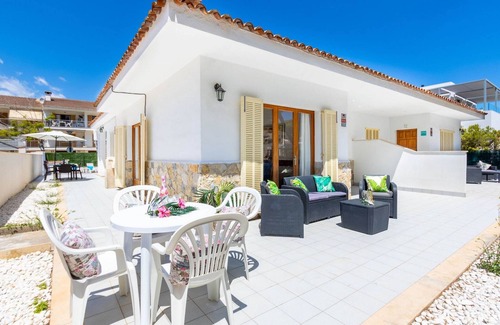 Villa Rosita 12A is a charming holiday home located just 30 meters from the sandy Puerto de Alcúdia beach, perfect for families or groups of up to 6 guests. The villa features 3 bedrooms: a double bed in the master room and two twin rooms, ideal for a restful night after a day of sun and sand. There are two bathrooms, both equipped with refreshing showers. The spacious living and dining area, with satellite Smart TV and a cozy seating arrangement, creates a welcoming atmosphere, while the fully equipped kitchen ensures you can prepare your favorite meals with ease. Outdoors, the villa offers a wonderful space to unwind with sun loungers and a Barbecue area. The terrace is perfect for al fresco dining or simply relaxing in the Mediterranean sunshine. The property also provides essential amenities such as air conditioning, internet access, a washing machine, and garden furniture for extra comfort. A garage is available for secure parking, making it easy to explore the local area. Villa Rosita 12A is ideally located near local attractions like the Alcanada Golf Course (8 km), Albufera Nature Park (4 km), and the Hidropark (4 km). The town of Alcúdia is just 5 km away, and the Palma airport is 60 km, ensuring easy access to everything you need while maintaining a peaceful retreat by the beach.