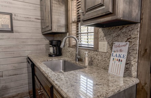 In addition to the cozy living room, fully stocked kitchen, and comfortable bedrooms, Lunker Bunker also has a covered deck that overlooks the lake. Enjoy your morning coffee while watching the sunrise over the water or spend a relaxing evening watching the stars.