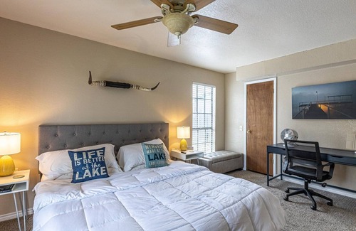 Enjoy family time w/ our table top sized tablet loaded with all your favorite games! Use our 1080p indoor/outdoor portable projector to hook you gaming console, watch the game or have a family movie night on a 120 inch screen. Grab out free to use fishing poles and tackle and take a 3 minute drive to our community pier, where the bass and crappie love to hang out. Kitchen stocked with anything you can think of for those family meals or take it outdoors and cook on your choice of propane or charcoal grill. Our house is literally close to EVERYTHING. 2 Golf Courses, shopping at the Historic Square or rent paddle boards and kayaks at the popular City Beach! Ask about out weekday discounts!