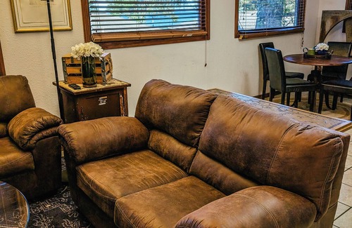 Our inviting living room offers a great space to gather with friends and family. Equipped with a large TV and plenty of seating, it's perfect for movie nights, game days, or simply unwinding after a busy day.