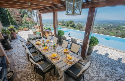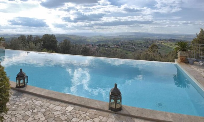 Villa La Perla is an extraordinary and beautiful home to enjoy holidays with family for a minimum of 1 week and up to 4 weeks stay with a magnificent panorama of unspoiled countryside of uninterrupted views from the terrace or the sun deck over hills of vineyards and olive-trees, medieval hill top towns and ancient forests. An environment immerse in natures delight of singing of birds and the chirping of crickets.