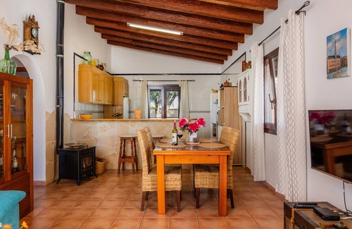 Not far from the coast and the traditional fishing village of Portocolom lies the typical Majorcan Villa Can Pota in a rural idyll. It has a living room, a well-equipped kitchen, 2 bedrooms and a bathroom and can accommodate 4 people. Facilities include Wi-Fi, fans, a fireplace, satellite TV, a baby cot and a highchair. The well-kept garden with pool provides the perfect setting for relaxing holidays. On the partially covered terrace you can also enjoy barbecue evenings together while taking in a fantastic view - sometimes in the company of chickens. This country house is perfect for a family holiday away from the crowds. Shopping facilities, restaurants, bars and cafés in Portocolom are 2.5 km away and the nearest beach, Cala Marçal, is less than a 10 minute drive away.