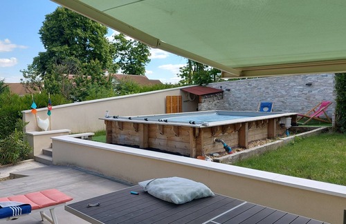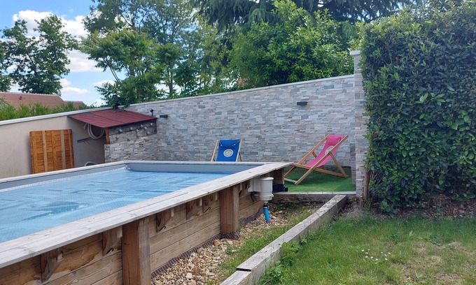 Nice private house with 4 bedrooms, 2 bathrooms, 1 kitchen, a large terrace facing an outside pool - Safe and quiet environment - quick access to Paris by train (28 minutes) and by car via highways A13 and A14 -