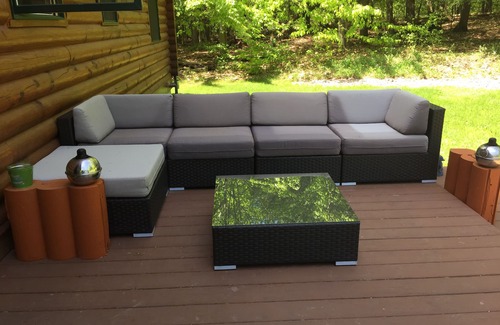 Come enjoy this lovely A-frame log cabin with two front porches and a large back yard and patio equipped with a fire pit and a gas grill with flat top! outdoor seating for the whole family! 2 night minimum.