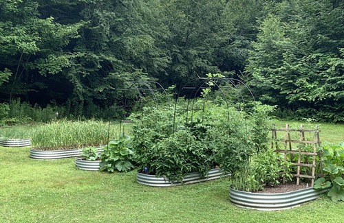 Main bedroom has a king bed and its own full bathroom and wall mounted flatscreen. There’s a second bedroom with a queen bed and television, and a third bedroom that has a twin xl bed. Second and third bedrooms share a hallway full bathroom. Living room has a large smart tv and couches that are also comfortable sleeping options. Blowup mattress which sleeps one person also available. Loft area has a queen size bed. Kitchen has dining room table that seats up to six. Laundry facilities available downstairs. We have two cats named Finnegan and Pia who will be at the cabin during your stay, however they will most likely hide in the basement. August and September rentals will come with garden vegetables:)